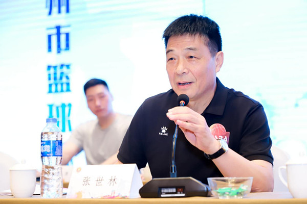 江苏省篮球协会秘书长张世林宣读江苏省篮球协会祝贺此次会议召开的贺信。