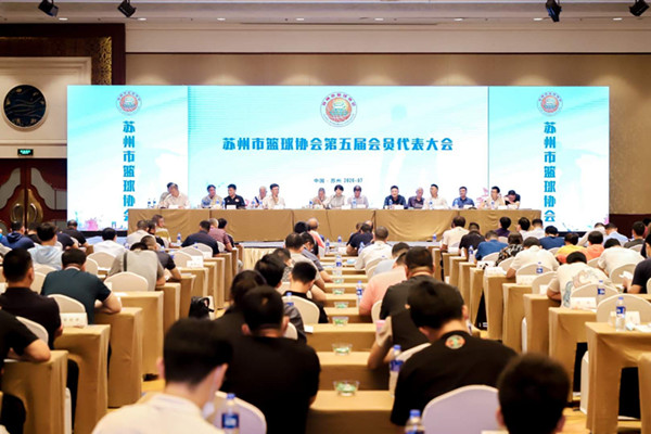 7月11日上午,苏州市篮球协会第五次会员代表大会暨五届一次理事会会议在苏州市香格里拉酒店召开,200余名苏州篮球界代表和嘉宾参加会议。苏州市体育局局长周志芳、苏州市体育局调研员龚冀铭、苏州市体育局副局长李镔、江苏省篮球运动管理中心副主任胡雪峰、江苏省篮球运动协会秘书长张世林、江苏金陵体育器材股份有限公司总经理李剑刚等领导和嘉宾出席大会。